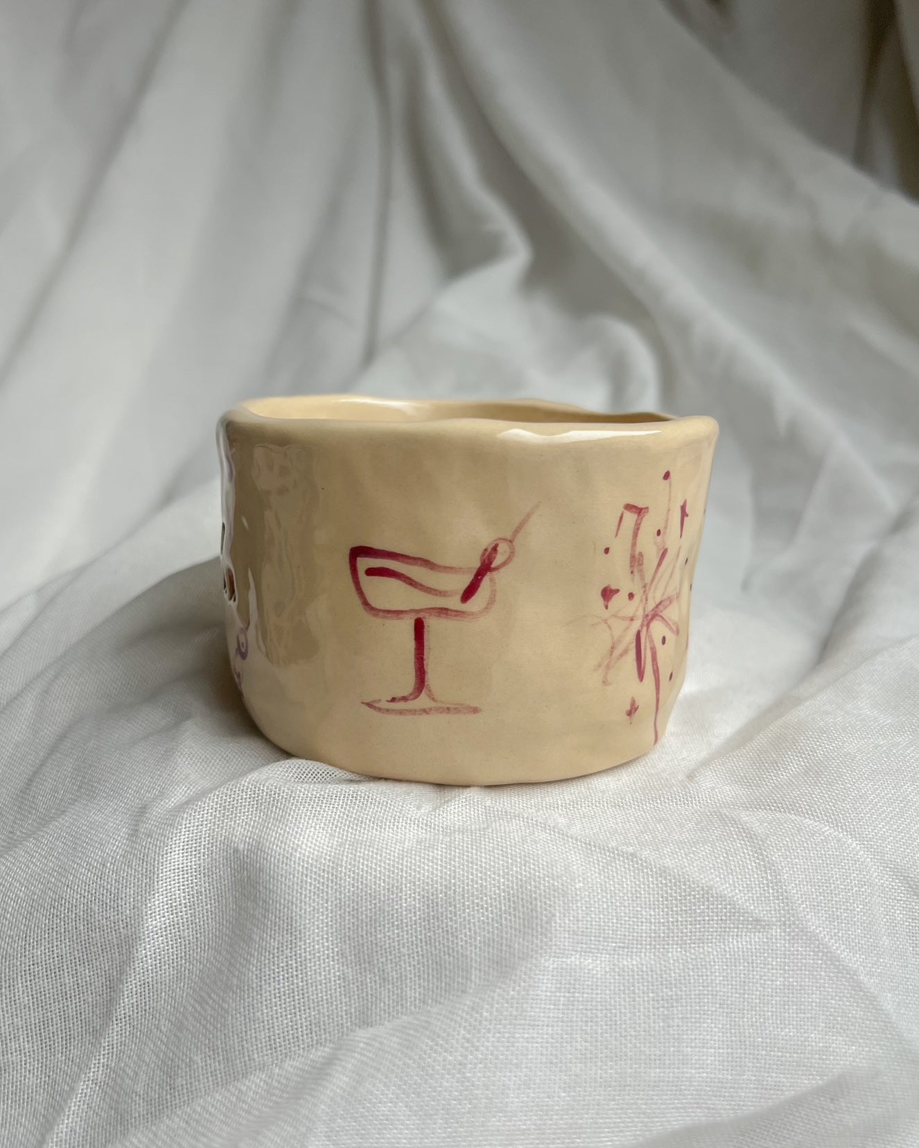 Handmade ceramic mug with New Year's Eve pattern. Each mug is unique and handmade, so there may be slight differences or imperfections between the same models of mugs.