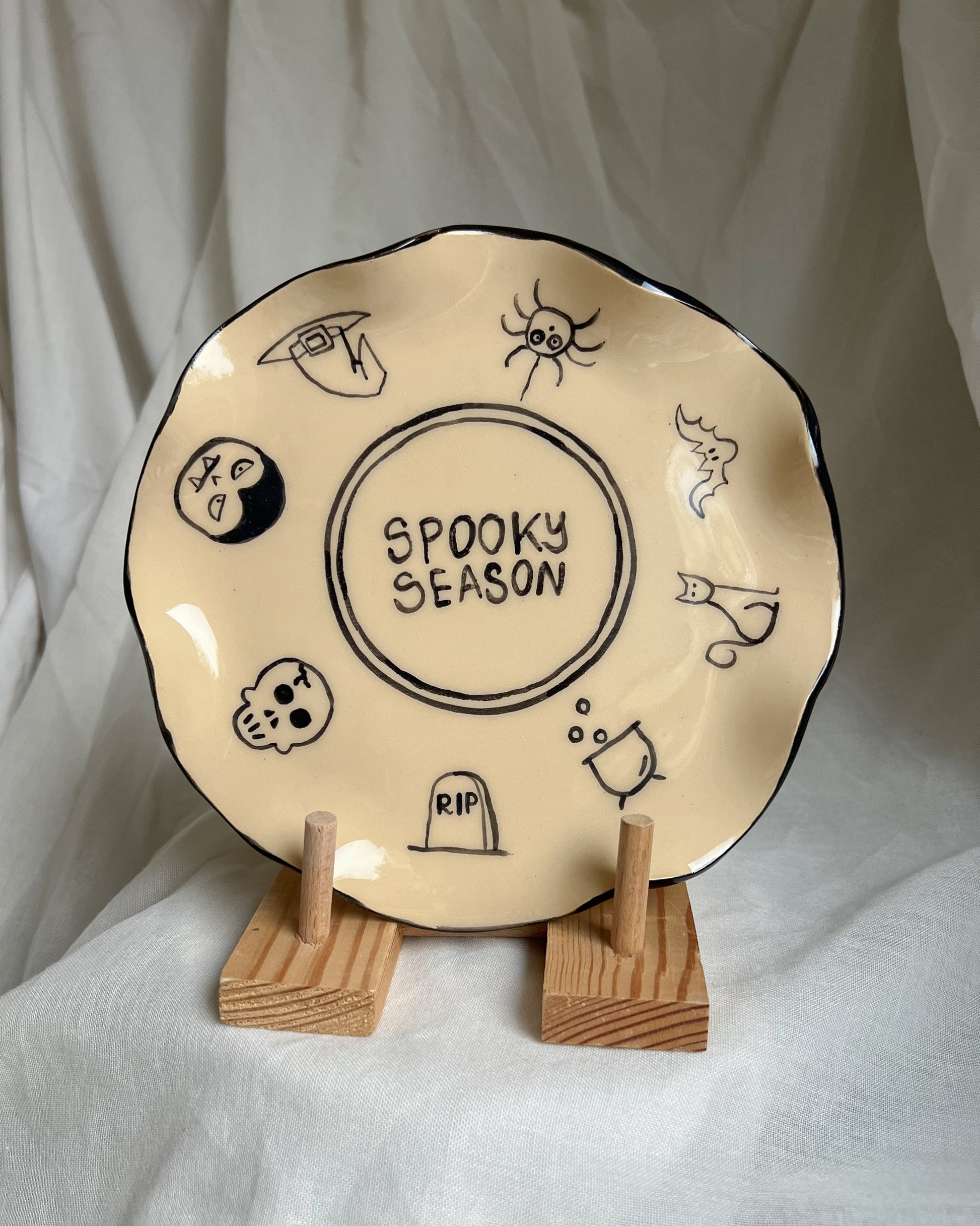 Handmade ceramic decoration plate with halloween's patternred. Each plate is unique and handmade.